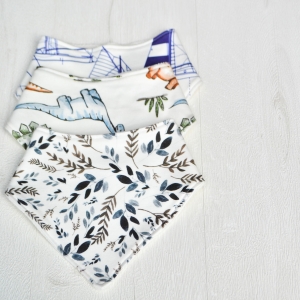 Bibs have a tendency to bunch up and be restrictive so I have tried to make the cut and fit as comfortable as possible so they don't hinder your little explorers next big adventure. I don't believe in one size fits all so there are two sizes and further popper adjustments so they sit snuggly and are effective