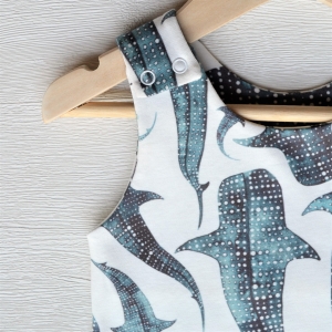 Patterns are printed using ecologically-safe Ultra-Colour technology, and popper fastenings are nickel free.