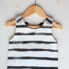 The salt n pepper short romper is a great piece for any capsule summer wardrobe. The black and white stripe leave you with endless possibilities, and can be layered with any colour t-shirt, jumper, shoes or accessories. The romper looks striking on its own, and will keep little ones looking cool and feeling cool. Whether you are planning to have a day at home, or are jetting off to sunnier climates, you can be sure your little explorer will be comfortable. The organic cotton fabric is breathable and soft against delicate skin.